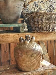 Rustic Antique French Walnut Oil Jar - 18th/19th Century Farmhouse Pottery