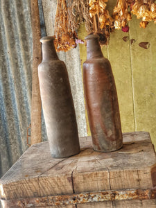 Pair of Antique French Cider Bottles – Rustic Terracotta “Bouteille Longue”