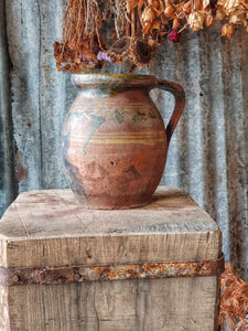 Antique Hungarian Farmhouse Terracotta Jug - Rustic Pitcher
